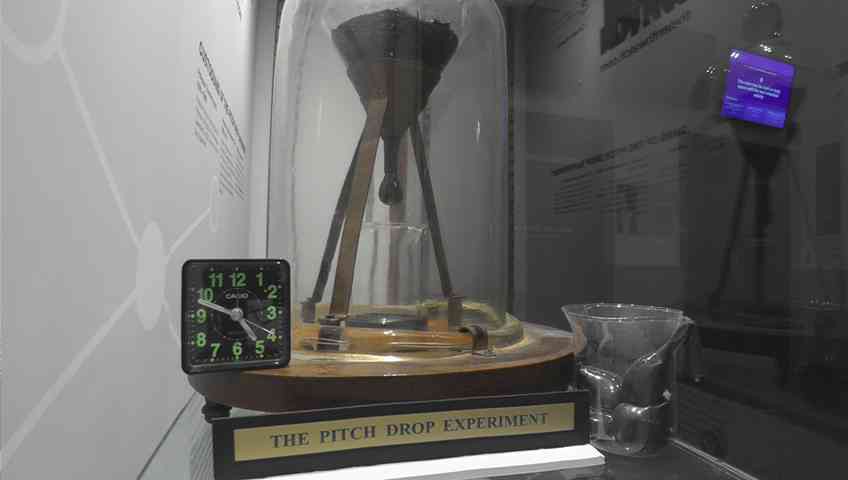Giáo sư Parnell đã đun nóng một ít nhựa đường và đổ vào trong một chiếc phễu thủy tinh trong môi trường chân không và để nguội. Sau ba năm, phần miệng dưới của chiếc phễu được cắt và nó bắt đầu chảy xuống.